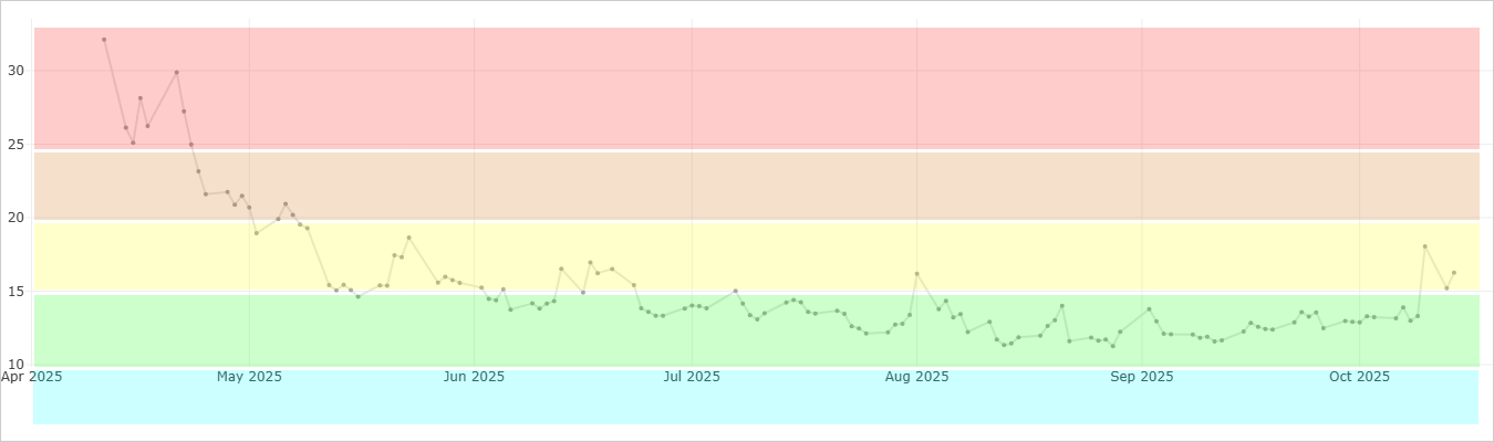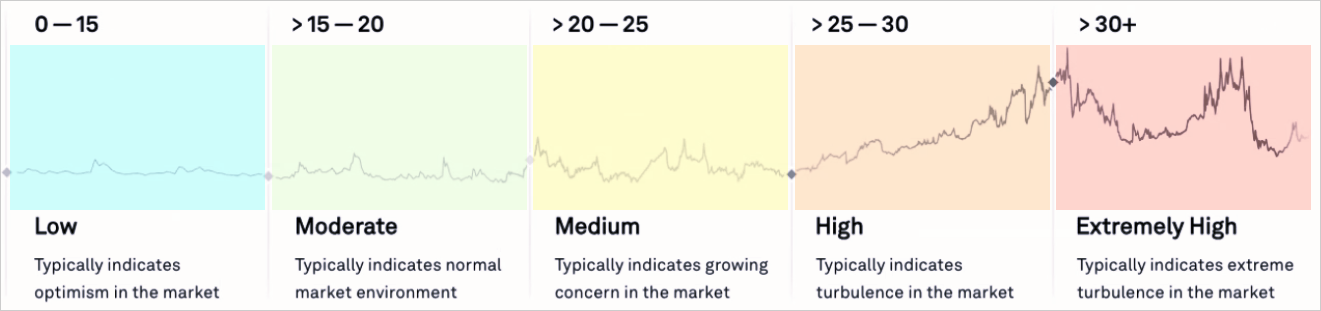A VIX around 15 or below is considered low (calm markets), while 20-25 is a rough threshold for elevated volatility. Sustained levels above 25 may indicate prolonged uncertainty. Options trading is better suited to a VIX of 20 and below.